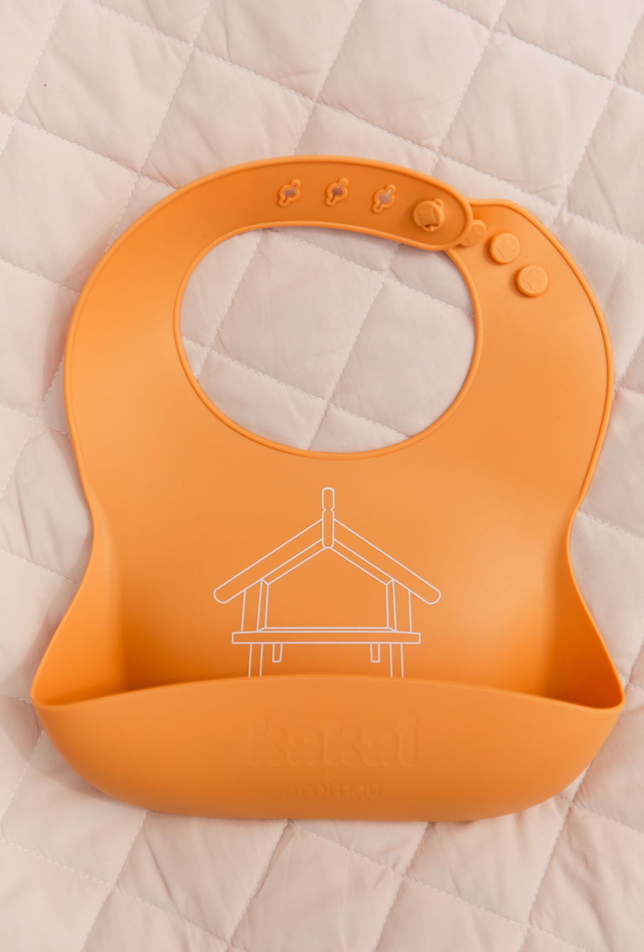 Our soft, durable silicone bibs are designed with a meaningful pātaka kai print, grounding whānau in traditional tikanga and the Māori values around kai.