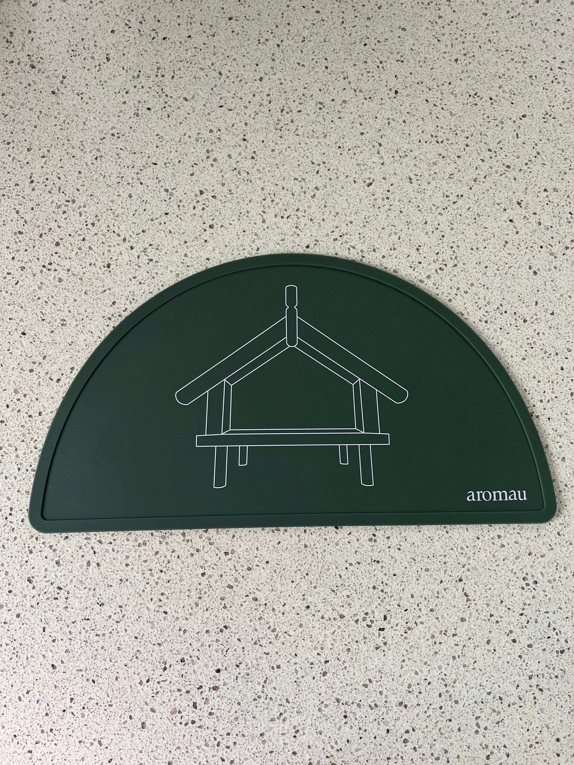 Our soft, durable, silicone placemats are designed with a meaningful pātaka kai print, grounding whānau in traditional tikanga and the Māori values around kai.